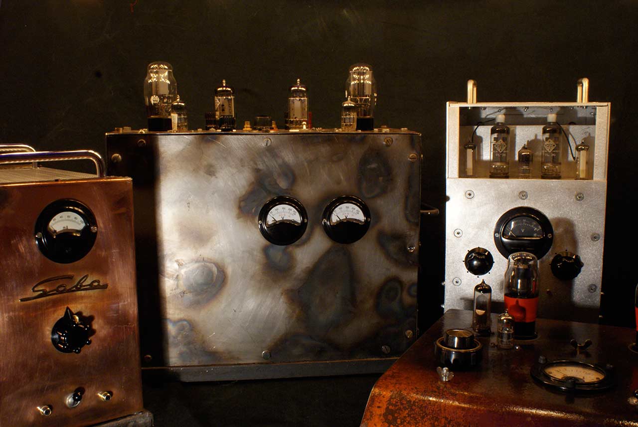 Leuchtkunstobjekte mit Glühlicht. Röhrenverstärker in klassischer Freiverdrahtung.